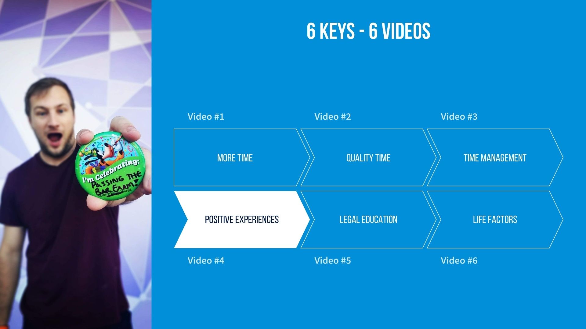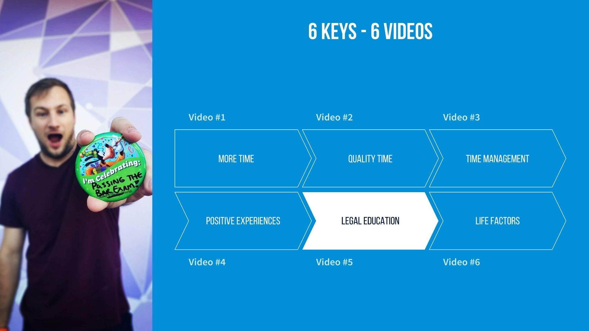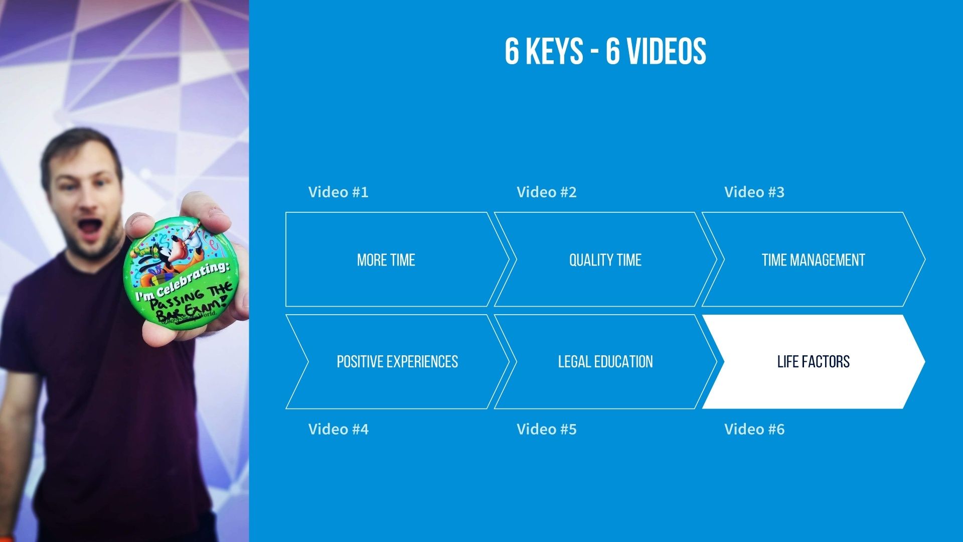 In these 6 training videos, Celebration Bar Review Founder Jackson Mumey takes you through the six keys that empirically improve your chances of passing the bar exam - no matter how many times you've failed before.